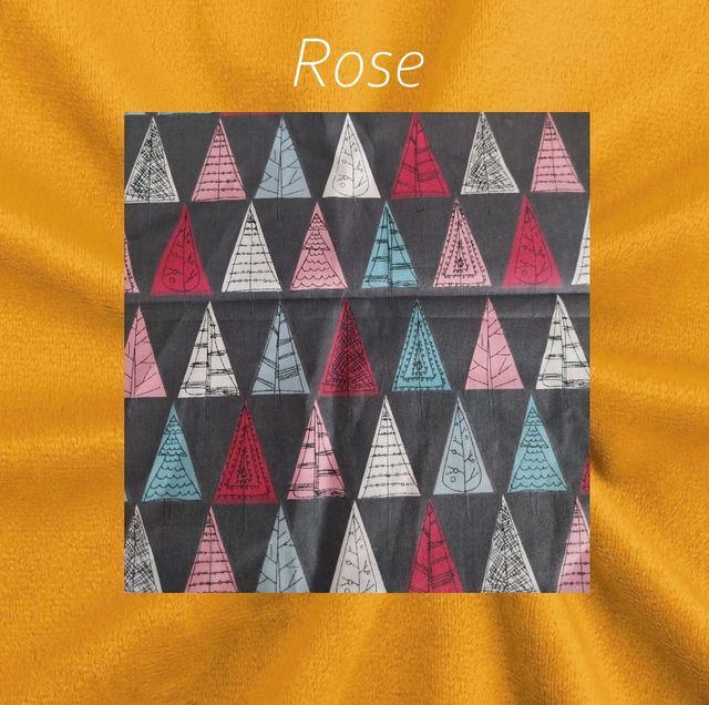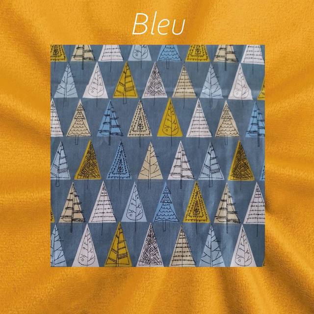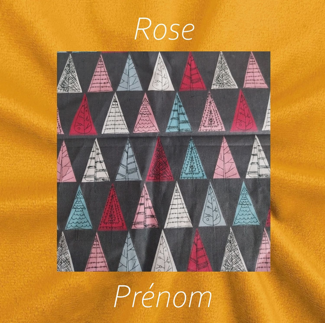 Renard minky lisse curry avec un très joli tissu coton petits sapins géométrique rose fond gris ou bleu.