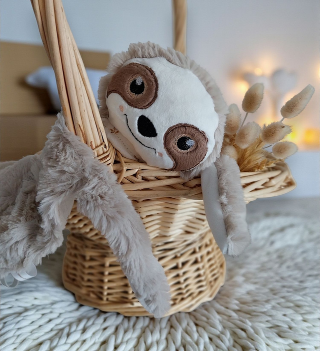 La tête de petit paresseux est rembourrée antiacariens, anti-allergique en fibres polyester.