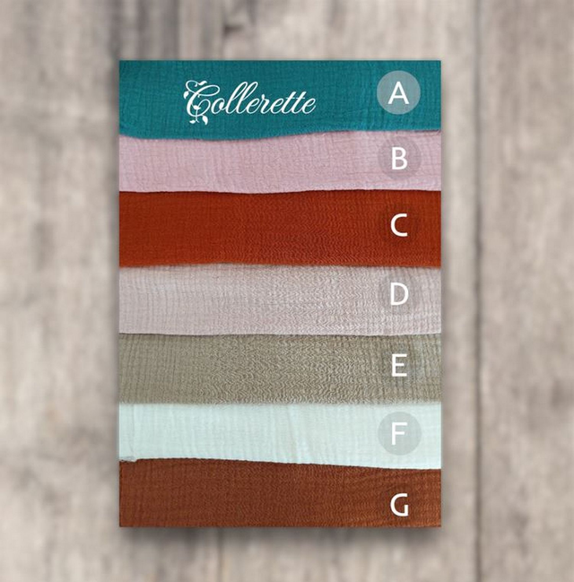 Le prénom sera brodé sur une collerette assortie, en double gaze ou possible sur l'avant pour la gaze n°3, me le préciser merci.