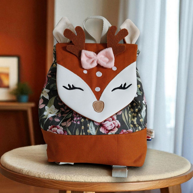 Un très joli sac à dos biche/faon parfait pour la crèche, la nounou, l’école maternelle ou les sorties.
