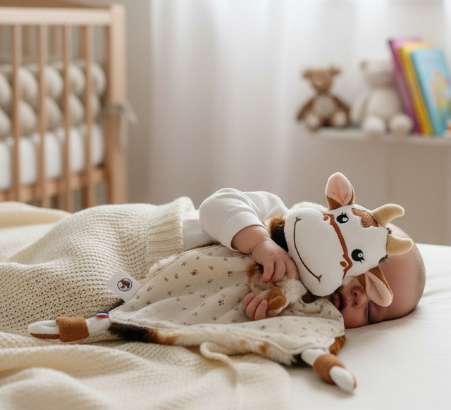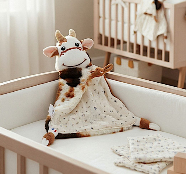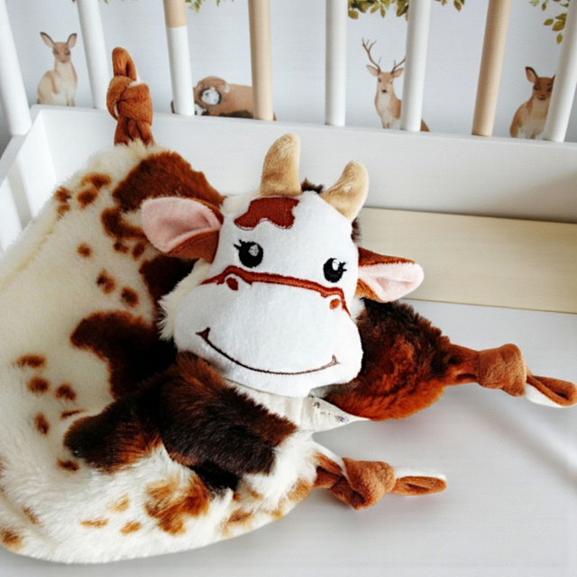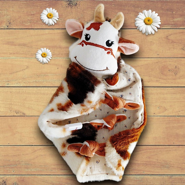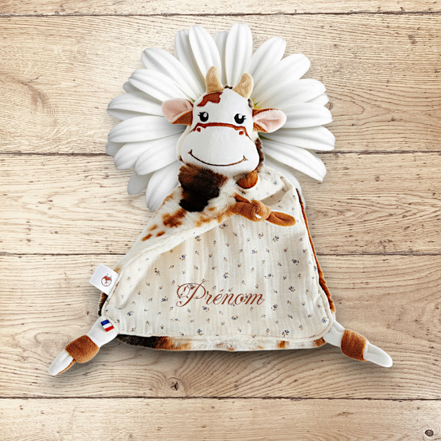 Un adorable et original doudou petite vache, toute douce dès la naissance de bébé.