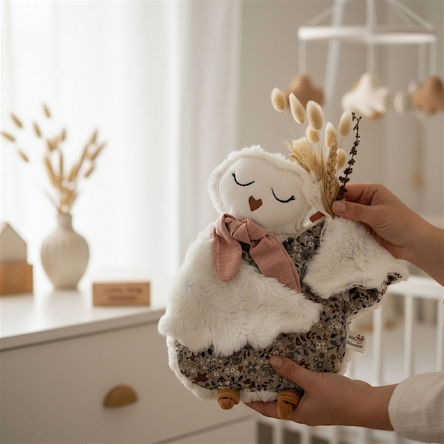 La tête de la petite chouette est rembourrée antiacariens, anti-allergique en fibres polyester.
