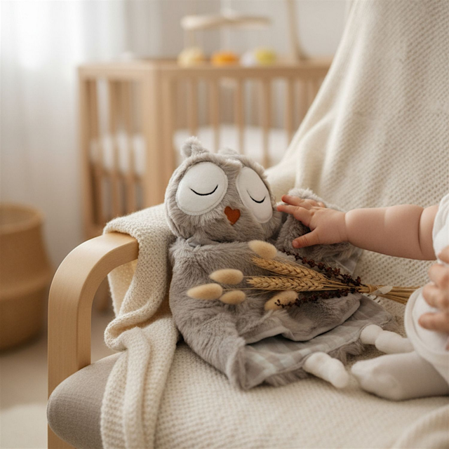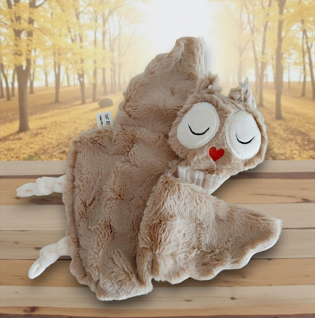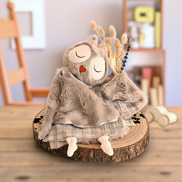 La tête du petit hiboux est rembourrée antiacariens, anti-allergique en fibres polyester.