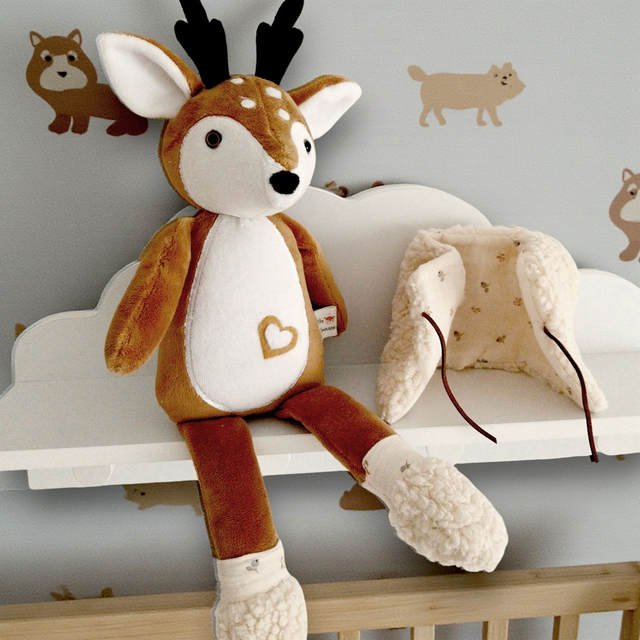 Pour des gros câlins ou la déco de la chambre de bébé cette ravissante peluche biche sera parfaite.