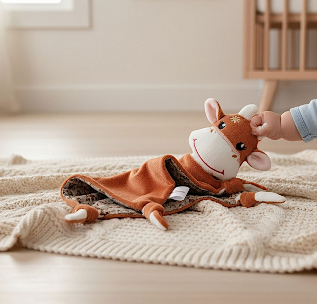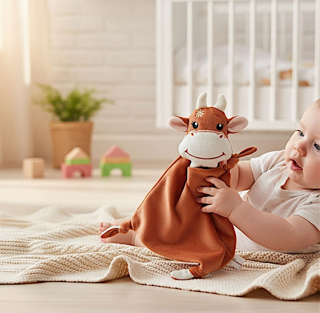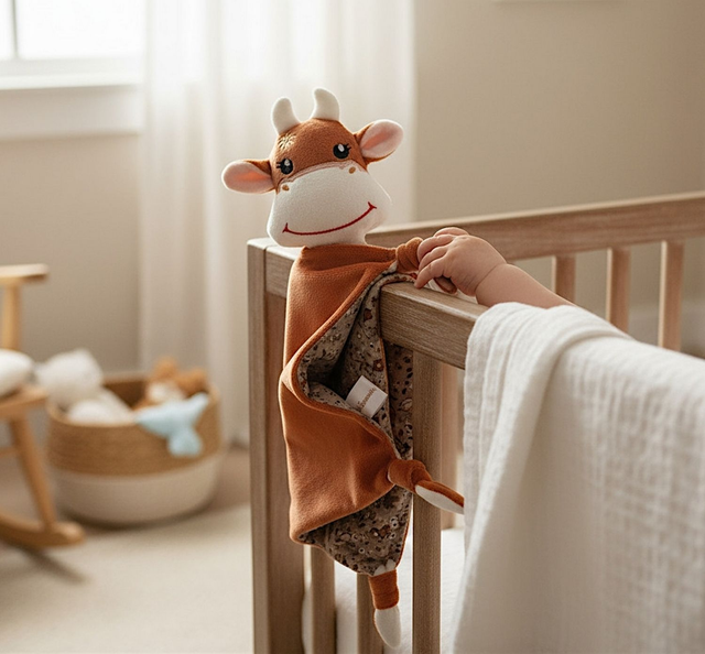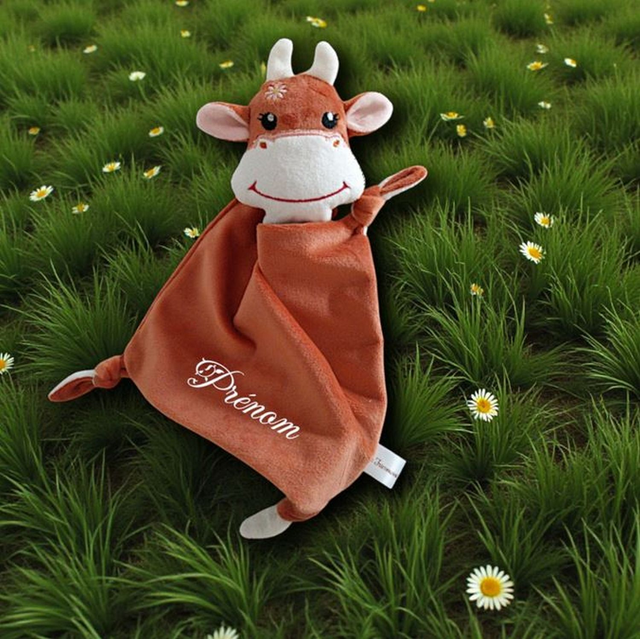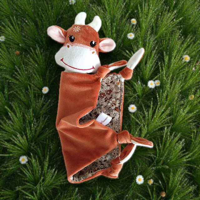 Un adorable et original doudou petite vache, toute douce dès la naissance de bébé.